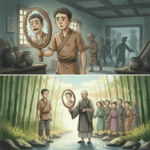 El sabio tomó un paño y limpió el espejo con cuidado. Al terminar, el hombre vio su reflejo con total claridad. «El mundo es ese espejo», dijo el sabio. «Si tu mente está llena de prejuicios y tu corazón de suciedad, verás manchas en cada persona que cruces. Limpia tu espejo primero, y verás cómo el mundo empieza a mostrarte rostros llenos de luz. No busques un pueblo nuevo; busca una mirada nueva».